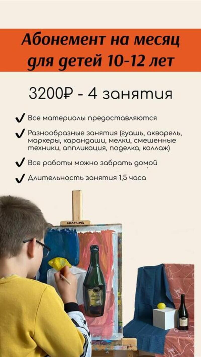 Мы приглашаем творческие натуры на занятия по рисованию и скульптуре. Рисунок или живопись, уголь или гуашь - в любом из своих вариантов рисование способно развить не только чувство цвета и координацию между рукой и глазом, но также, что самое главное - художественный вкус, который будет вам полезен в огромном количестве ситуаций. Приходите к нам - мы с удовольствием поведаем вам о наших направлениях и их пользе! А может быть, вы захотите сделать творчество своей профессией? Это будет интересный и приятный поворот событий!